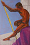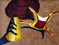 The works are stylized with strong colours, typically on a large scale. The subject matter is often inspired by places Martin has travelled.